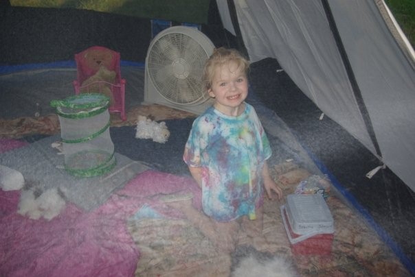 Moon is high in the sky, crickets serenade each other. Behind me, to my side, is a thicket of forest deep and dark, where deer, coyote and other wildlife roam. It’s strange to look and see my backdoor, a mere thirty feet away. Mid-July, the hottest of the hot, when the air seems to stick to my skin. A huge, blue tent with dozens of pillows (because I love them), a blanket (because I can’t rest unless my body is covered), an icebox filled with Dr. Pepper and water juices, a bag of sinfully delicious snacks. Books are strewn about the floor of the tent, stuffed animals abound in every corner. The “girly girl bag” rests on one of the two sleeping bags, filled with nail polish, hair “pretties” and make-up. A bug habitat resting beside the entrance.