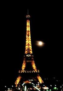 Earlier in the day, I’d walked along the cobbled, narrow streets, visited a park where I actually saw with my own eyes dozens of easels set up beneath red umbrellas, occupied with painters in black berets who were busy painting everyone and everything, I’d listened in awe at the language I was still trying to learn, trying to comprehend that to these people, I was the one who seemed strange. Now, I was so excited I could hardly stand it. My teacher and guide had made us wait til night fell before he’d allow us to see it. We had to walk to get there. Suddenly, I came over this hill, and I turned and I saw a truly beautiful sight: the Eiffel Tower rising high, all lit up in bright lights. Numbers were on it that counted down til the new century. I felt my breath catch, it was so beautiful.