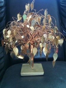 Mama O was my great grandmother. When I was born, everyone wanted me to call her “Grandma Owen” but I couldn’t say that; it came out “Mama O” instead. And it stuck. Mama O died when I was six, so I don’t have but a handful of memories of her. The ones I do have, though, are memories I cherish. I remember going to the store with her and my great-aunt one day. I remember how she would let me use her cane to swat at the naked light bulb string in her teeny tiny living room. I remember she had an ancient washer that sat on her unstable, rickety front porch. I remember she had an outhouse, and a garden. I remember the dress she was wearing practically every time I saw her; a faded purple one with a flower print on it. Her skin was leathery and wrinkled, her eyes and hair were dark. I remember that unique, bittersweet smell that I’ve only smelled inside her house. I remember she wrote me letters, and once, as a five year old, I sat in the lap of my aunt and steered the wheel of an old car up to her house. She sat in her same spot on the front porch and waved to me. She gave good hugs. There were a couple of really old, wooden rocking chairs that also sat on her front porch and one of them had my mother’s name carved in it somewhere. And, on her mantle, was a golden musical tree. It was the prettiest thing in Mama O’s ancient house, which is probably why I remember it so well. It seemed to somehow match the ancient, enormous oak that stood smack in the middle of her front yard. The real tree was massive and, at one time, had a tire swing attached to it. It was a symbol of strength in front of the shingle-roofed, one bedroom home. Those in the family always talked about the trees—both the real one, and the golden decoration one. I remember always wanting to make the golden one play and getting excited about playing under the shade of the real one when we would visit her. Both trees were beautiful.