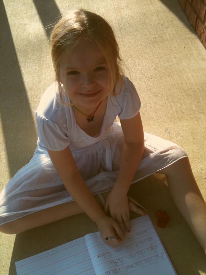 Over the course of a week’s time, my oldest daughter Breathe has written her first “chapter book.” She is eight years old and she is very, very proud of this story and, after reading it, so am I!! I love how the strong characters in the story are the girls–that rocks! I also love how imaginative she is. She applies a lot of her real life to her stories, much like another author I know. ;).
