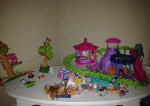 It’s just a playset. And yet it has Alight’s name written all over it. We call this set “Beech Bend.” It has a working roller coaster, a pool, a tree house and, best of all, “little toys,” miniature sized dolls and princesses and accessories that are just perfect for small-sized hands. We’ve knocked you off tables, we’ve nearly lost several parts of you. We’ve stuffed “little dolls” that are really too big into the roller coaster car and laughed, time after time, as the hefty weight topples it over. We exclaim “yay!” every time the roller coaster successfully completes the track and splashes a tiny dot of water on us. We stick miniature Barbie and the mermaids in the pool and laugh as they do tricks. Hours have been spent changing the clothes of these dolls and creating elaborate make-believe scenarios that leave us laughing and grateful for “Beech Bend.” And Squinkies. We have almost three hundred Squinkies, because they so delight the girls and myself