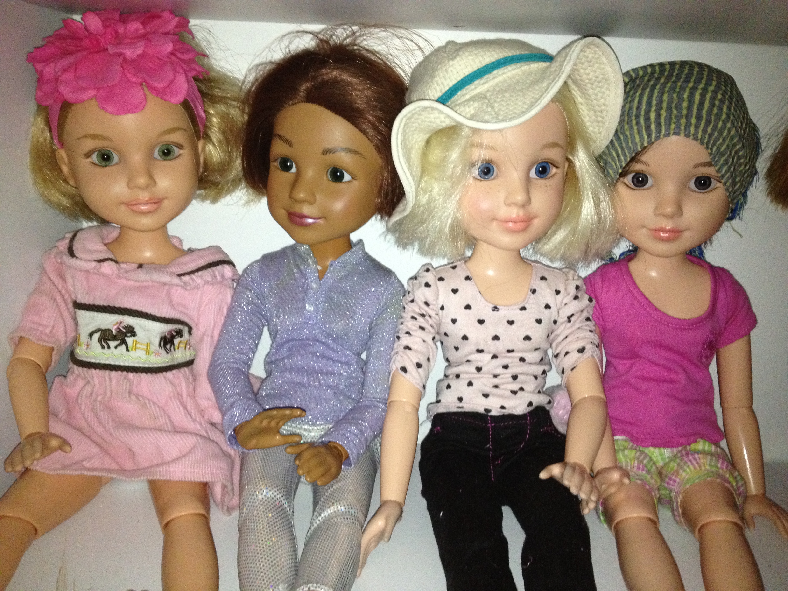 I knew baby dolls would be beloved in this house, but I had no idea which ones, or what memories we would create with them. The picture on the left is of the Baby Alive’s we have. Emma, Joy, Charlotte, Clarabell and Annabell have been us with ages. Every time a new Baby Alive comes out, we get very excited. We have cut your hair, fed you all kinds of things and then squealed with horrified delight when you pooped or peed. Late at night, I’ve heard you laughing or talking all by yourself, and I’ve laughed. You’ve gone on dates with our boy dolls Hayden and Hunter and you’ve also groaned and complained about being in the same room as said boys. You’ve had your limbs twisted and turned every which direction to get you to do acrobats like sitting and standing unaided, crawling and even cartwheels. You’ve been banished to time-out because, in our game of daycare, you couldn’t stop talking at naptime. But, no matter what the game calls for, you’ve withstood it all. Spilled mystery food, soiled “diapers,” having your teeth brushed and your hair twisted and tangled and cut and sprayed with hair spray (we even used a real curling iron on Charlotte once). And then, there are the “Mary Kate” dolls on the right. These are the friends Breathe loves. You’re perfect for riding our horses and we love how flexible your limbs are; we can pose you in just about any way we want. We especially love that you “come alive” during our “experience” game. We’ll pose you up and remember the positions you’re in. Then we’ll leave the room and go for a walk. The girls haven’t yet caught me as I quickly change your positions so when we come back in, they are amazed that you have “come alive” and moved. You’ve been stuffed into the freezer. You’ve been put high on a bookshelf (pour Ashley, you were so scared of heights too. It took you forever to “jump.” I’m sorry about that—it took me forever to get the girls to go into the other room for half a second so I could get you down). We change your clothes every night, take you out of your daytime clothes and put you into pajamas. We brush and braid your hair. We even paint your fingernails and toenails. We know how old each of you are, and what your individual tastes are like. We know which ones of you are sisters and which ones are friends. We know who is bossy and who is shy. Day in and day out, you provide the most excellent source of unique and differing games. Our imaginations get to soar when we pick you up and give you a bottle, or teach you how to swim. In short…. thank God for baby dolls.