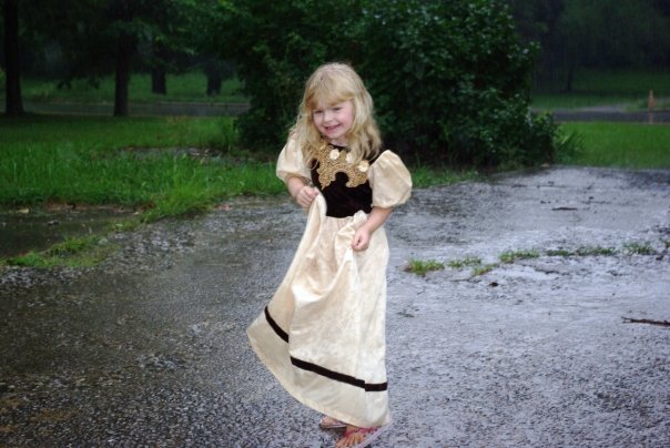 Physical rain makes me feel calm and peaceful. I love to listen to it as it pitter-patters on the window panes. I love the swooshing noise it makes as cars drive through it. It makes me want to curl up with Lambie, my pillow, a blanket and a never-ending book. It forces me to slow down. It reminds me that the world will wait. I also love the rain because playing, dancing, in it reminds me to take the good, and the bad, in stride. It teaches me to dance when the world is grey and my feet buried in a puddle. It reminds me to keep my eyes focused ahead because, no matter how awful something may feel, the colors of a new rainbow are just ahead. Rain can lull me to sleep and, when it does, I awake excited about the possibility of seeing a rainbow in the morning. Rain brings new growth, new chapters. It also brings promises. I won’t hide inside for fear of catching a cold when I could stand outside with my head tipped all the way back and feel the cool rain flow down my face. Although it doesn’t always feel like it, rain is something over which to rejoice because it almost always brings something better into my life. Choosing to believe that, even when it thunderstorms, allows me to face the negative with hope and a spirit of optimism. I’d rather be pushed just outside my comfort zone and grow spiritually, emotionally and physically then remain at a standstill in life, always thirsting for something different. We played in the rain today. We took an impromptu break from school and rode the girls easy riders in swimsuits in the pouring down rain. We also took our nightly walk, even though it was still raining. And we are all the better for doing so.