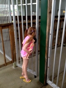After rides comes the magic show with tricks we saw last year but are still memorized by: a girl disappearing, a card trick, a magician eating fire. Magic is special to us: Dinky Gowen, the magician who performs daily at Beech Bend, is who got the girls hooked on magic. Last year, we bought home his magic kit; this year, the girls go to a local magic club where they learn more magic tricks. It inspires confidence in them–and gives hours of fun.