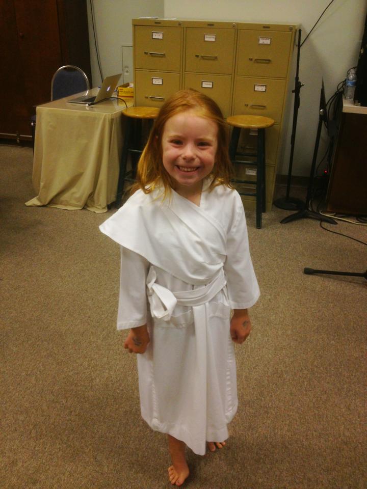 Anyway, lest I digress, this morning, we awoke bright and early, made our way to the church. Family came. We arrived about forty minutes prior to the start of service. The musicians were on stage, practicing for a couple of solos. She sat in my lap and we talked. I told her how proud Jesus was of her today, and how much I love her. Soon, we were greeted and she was given a robe to wear for the waters; we were led to the front row to await the start of service. My eldest daughter, Breathe, was baptized a few years ago so I was familiar with the routine. But I was not prepared to feel the rush of emotion crashing over me before service even got started. Still, as we sat waiting, tears filled my eyes. This was my sweet Alight, the little girl who still walks on her tippy toes and loves to go places; she was making a monumental decision at a really tender age. Our pastor came and hugged her and, at my request, took a picture with her. And then the barrage of people came. Some of her good friends ran down to the front of the sanctuary to hug her, our church’s prayer warrior came and gave her a sweet hug; our music director and our soloist came for hugs; the director of deacons came and told Alight that our deacons love her and will be there for her if she needs them; people we don’t even know approached for hugs. Alight felt special but, even more importantly, she felt cared for and loved by her church. The music started, service began. After the first song, Alight was asked to come up on stage. Pastor Dan spoke about how precious children are, how Jesus instructed us to become more like children. He said a prayer and used Alight’s name. As he prayed, more tears filled my eyes.