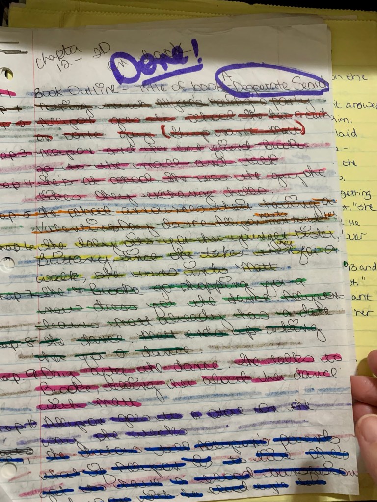As I looked through the old outlines, the completely illegible outlines, what struck me the most was a sense of tenderness for the teenager who relied on writing for so much, for the girl who, though she was hurting, maintained a sense of hope for she believed publication was possible. Writing was my dream. I used to tell anyone I could that I didn’t dream of being famous… I just wanted the pages of one of my books to turn yellowed from age, preferably with that “old book” smell.