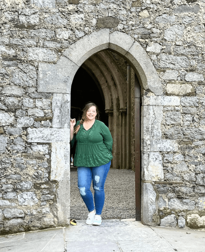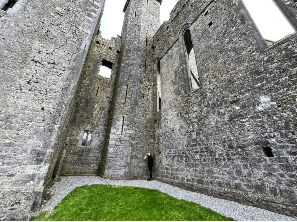 First, we landed at Dublin airport, and drove 2.5 hours to the first destination: Rock of Cashel. The pictures taken at the Rock ended up being some of our favorites. When we first got there, the weather was perfect. Rain had been predicted all day, every day, but we didn’t see a drop. Instead, it was cloudy and cool. This gave us the perfect chance to soak in how green the landscape was (we commented on how green things were at least once an hour) and enjoy the ruins. To get to the Rock required a trek up a fairly steep hill. We took breaks to look out over the ledge at the many sheep. Once at the top, though, we were among only a handful of visitors, giving us the chance to really enjoy the ruins.
