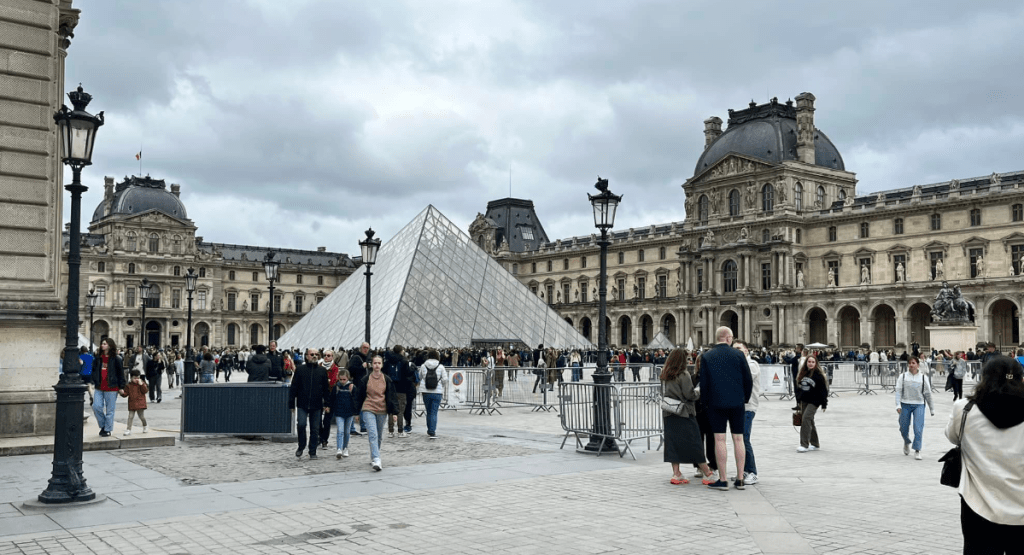 The following morning, our first full day in Paris, we made our way to the Louvre Museum. This involved riding the subway and taking a bus and we were very cognizant of and nervous about pickpockets. There were multiple signs warning us about them. We’d purchased anti-theft bags that we wore in front of us to be careful and we tried to find seats so as to limit the number of people around us. We were especially careful when we were in busy places like the Louvre. Luckily, we were not pick pocketed and were able to enjoy the attractions.