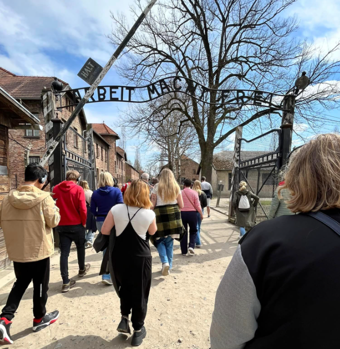 We passed through the infamous gates, where the phrase “Arbeit macht frei” (work sets you free) greeted prisoners. To imagine walking beneath that to the sound of barking dogs, a scene of utter chaos behind you as people are being ripped from families as they disembark the most dehumanizing train ride of their lives, passing by an orchestra (played by prisoners) with the sight of smoke rising in the background was overwhelming and made my stomach churn.